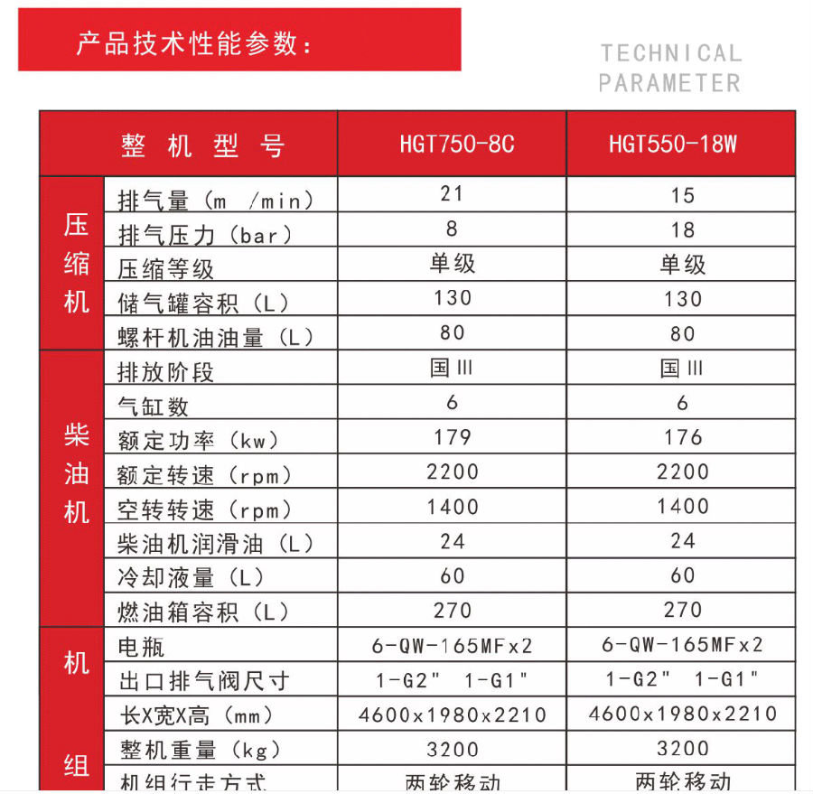 HGT單級中高壓 柴移螺桿空壓機(jī) HGT550、HGT750、HGT700 柴移