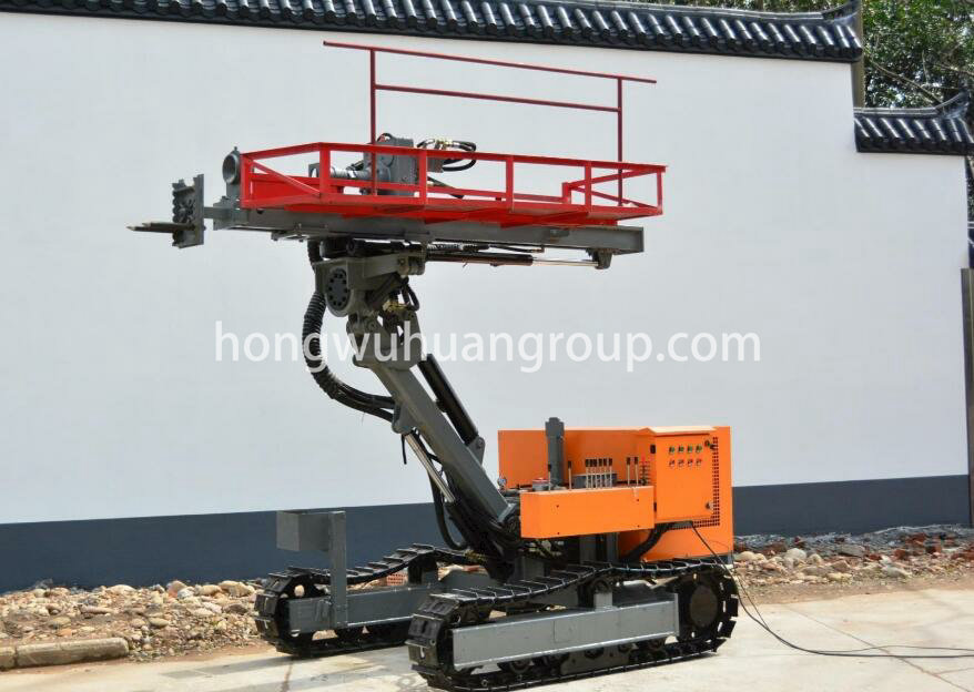 2、專利號:201520072799.5 設有操作平臺的潛孔鉆機經濟實用的操作平臺,解決了鉆鑿高位水平孔傾斜孔拆卸鉆桿作業(yè)時操作人員無處站立的難題。